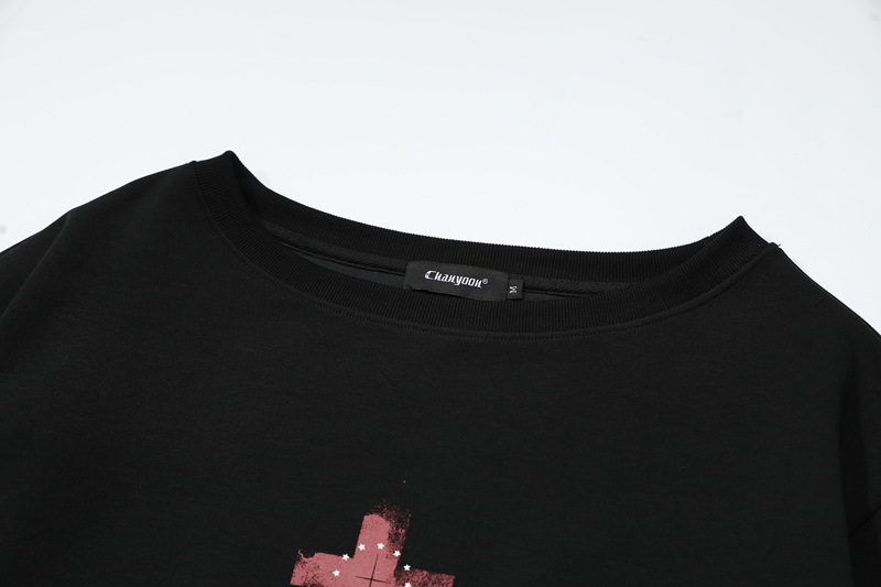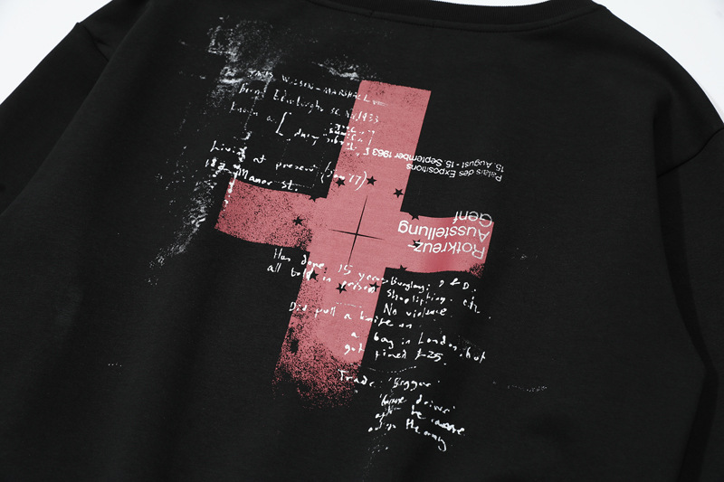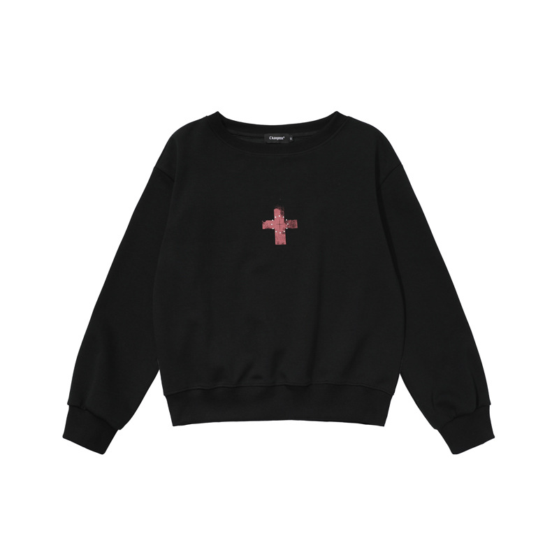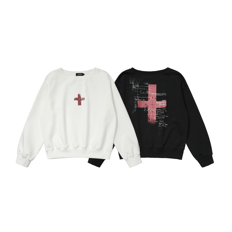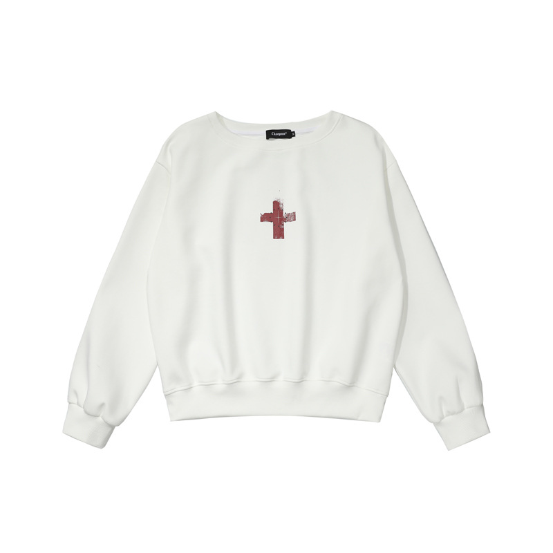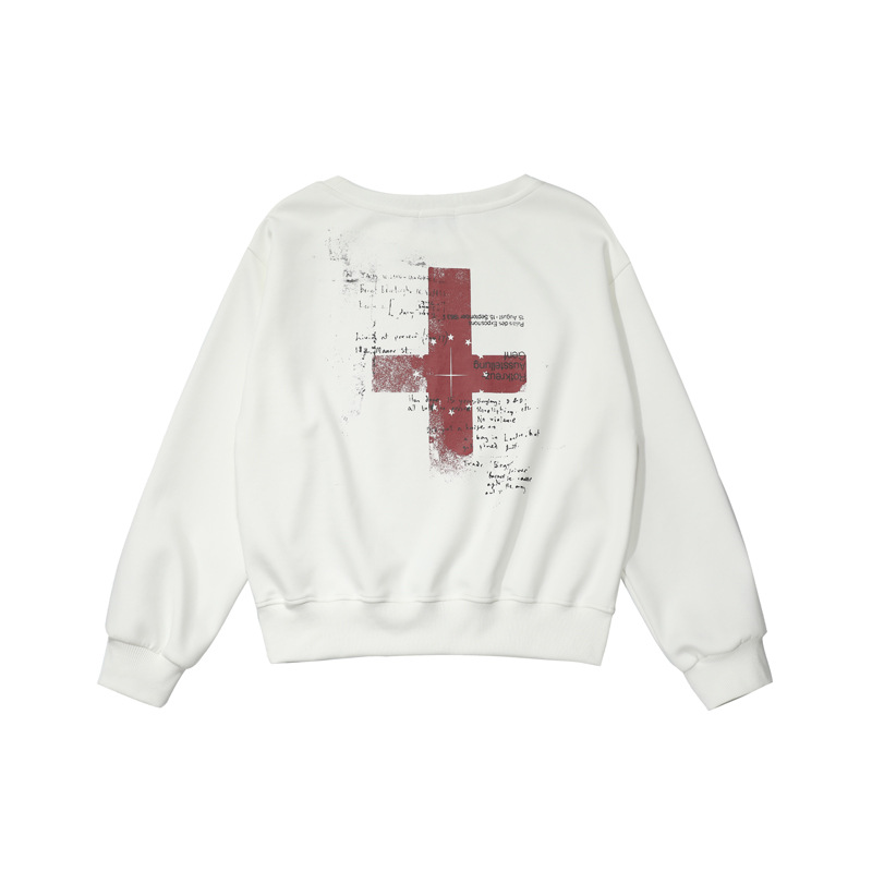 Retro Off-Shoulder Sweatshirt for Women,Cross Print, Long Sleeve, Loose Fit, Slimming, Trendy Brand Top